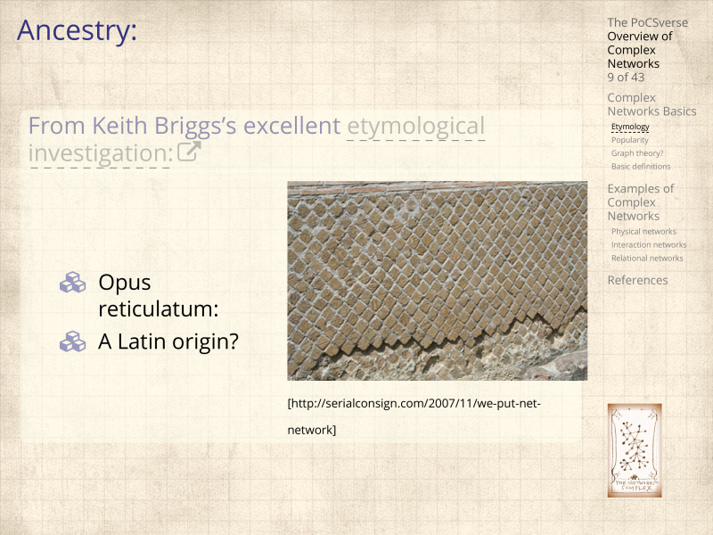 Some history and a broad taxonomy of the underlying fabric of many complex systems.